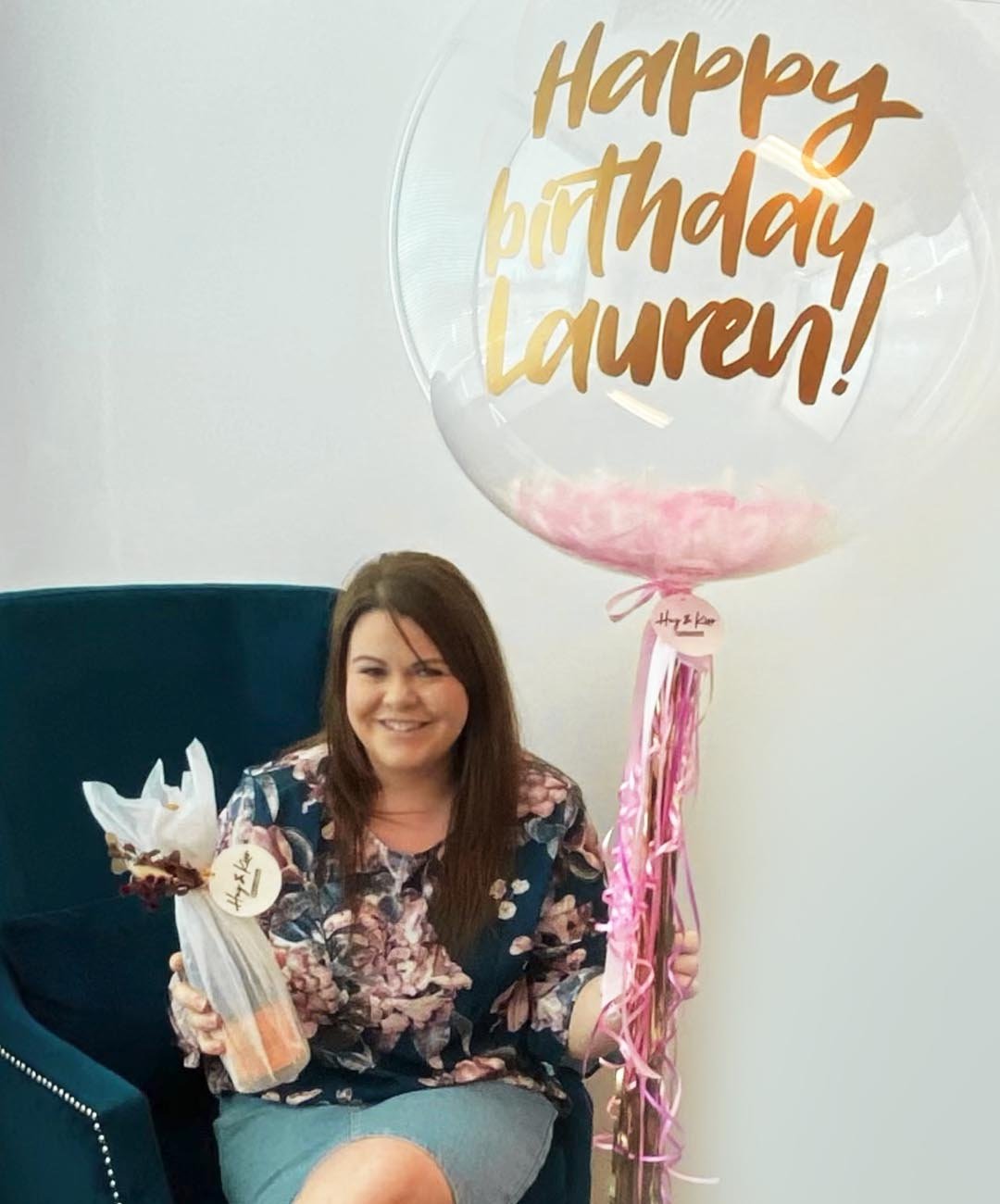 • Handwritten gift tag & balloon weight